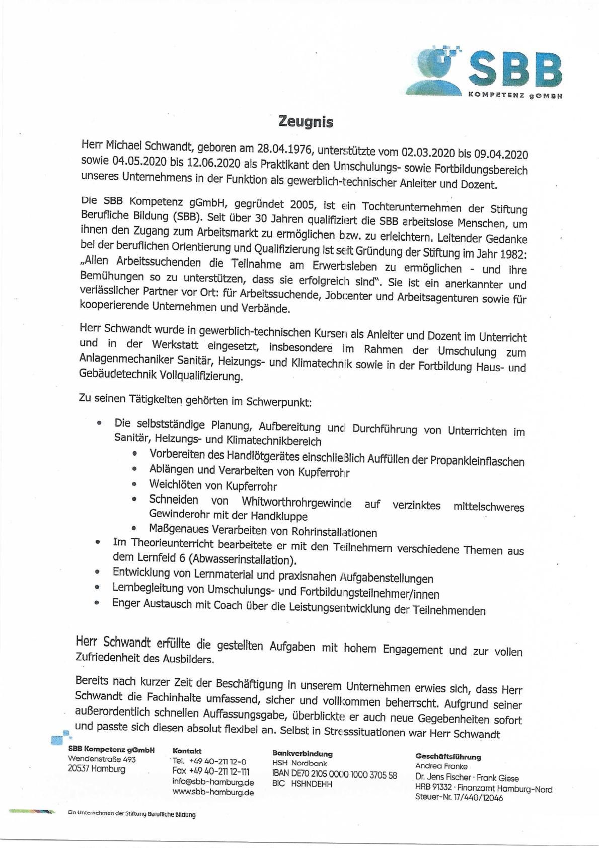 Ich habe im Jahr 2019 ein Praktikum bei SBB Kompetenz gGmbH im Bereich AMSK für Erwachsenenbildung.